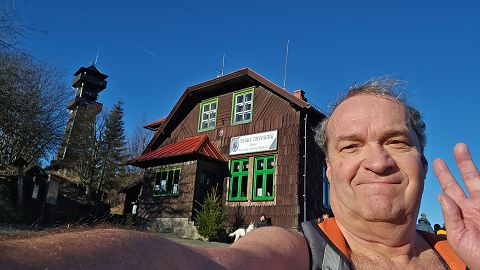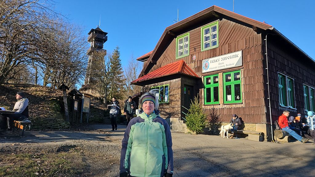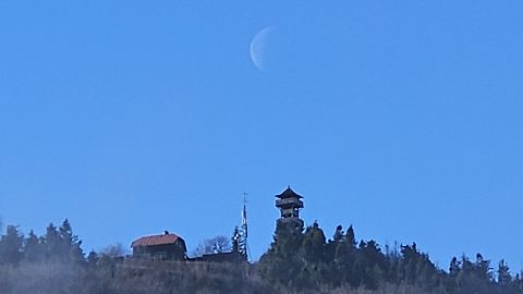 Vrchol Velkého Javorníku, nad nímž je vidět měsíc.